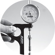 ARP highly recommend using a stretch gauge when installing rod bolts and other fasteners, where it is possible to measure the length of the fastener. It is the most accurate way of measuring preload of any bolt. When using a stretch gauge it\'s best to measure the fastener prior to starting and monitor overall length during installation. When the bolt has stretched a specified amount, the correct preload or clamping force has been applied. ARP recommend that you maintain a chart of all rod bolts and make a note of the fastener length prior to installation and after any disassembly. If there is a permanent increase of .001" or more in length, there is a deformation and the bolt should be replaced.
